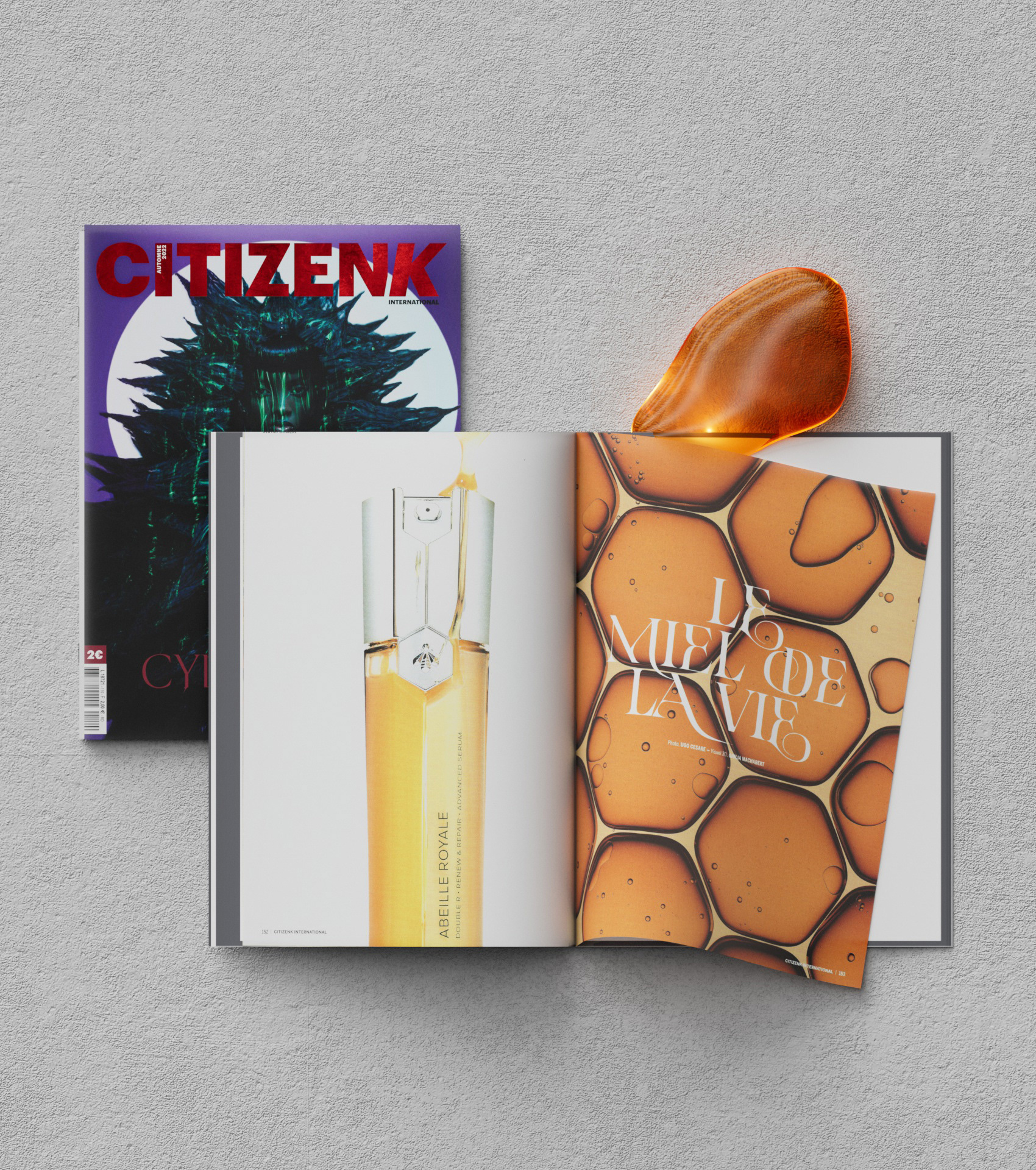 creation of a 3D honeycomb still life - fall 2022 issue left page packshot by Ugo Cesare